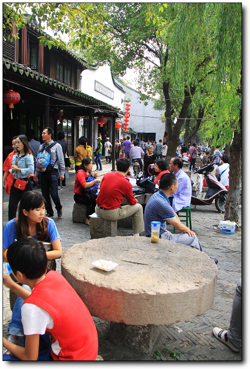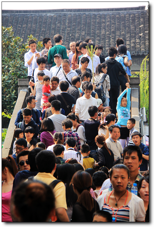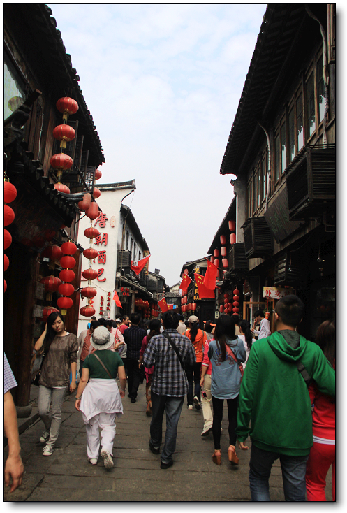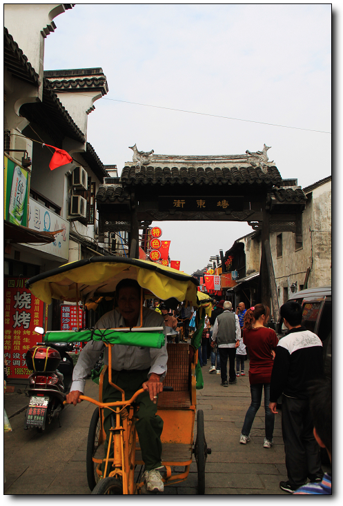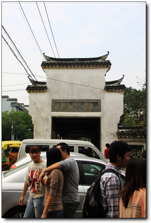 车沿着320国道向杭州方向前进,然后转入杭州绕城,再到练杭高速,再到申嘉湖高速,一路下来,还是十分顺当,没有出现传说中的堵车,而且练杭高速一段路就在5月份去乌镇的时候开过,所以大约也是一次复习。真正拥堵出现在下了申嘉湖高速转入西塘古镇方向的时候,沿着平黎线行驶,车流滞缓明显,大约是到景点形成了一股高峰。旁边有很多当地的村民,在问自驾而来的游客是否需要带路,据说可以绕道而进入景区,而且门票也可以很便宜。虽然很有诱惑,但毕竟不能使人放心,也就按照正常线路、正常票价进去西塘古镇。