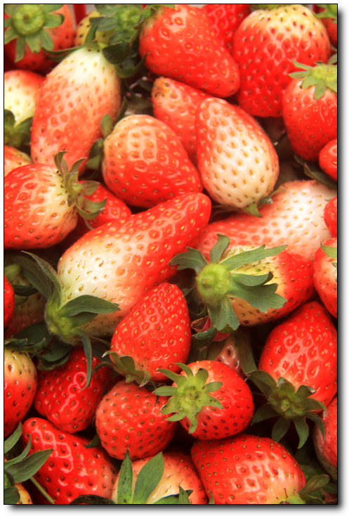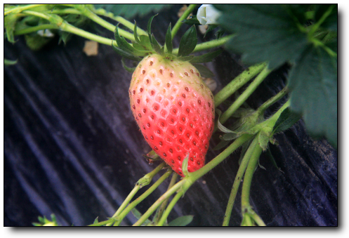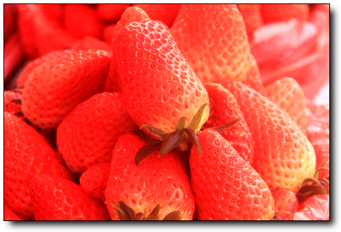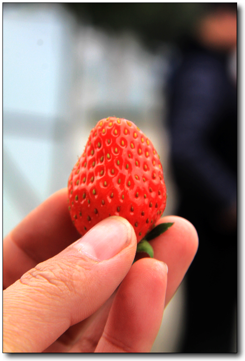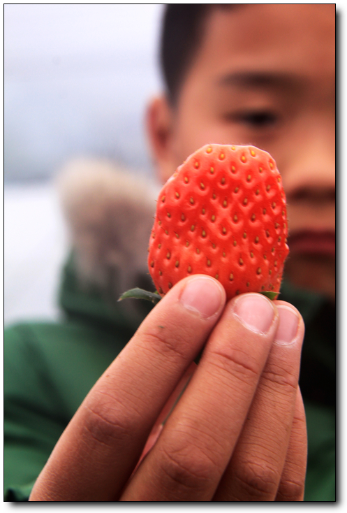 走出大棚,篮子里是满满的草莓,去除了一切土地,去除了枝叶,去除了花朵,只剩下红色的诱惑,而它也是真实的,真实地可以闻见那种香甜味,真实地可以放进嘴巴里,但是这种真实远离着自然的春天,远离着向往的诗歌。