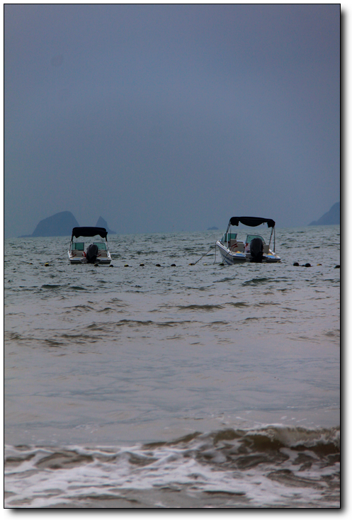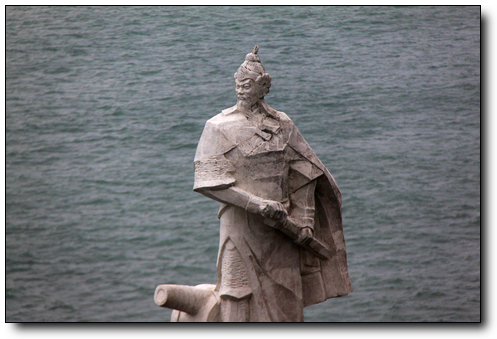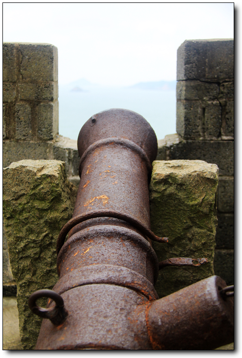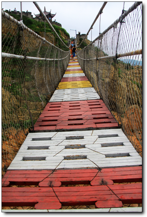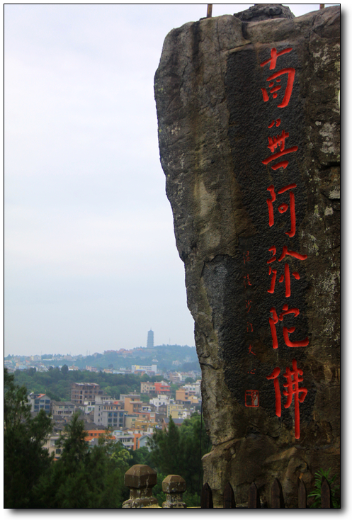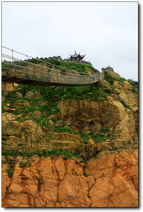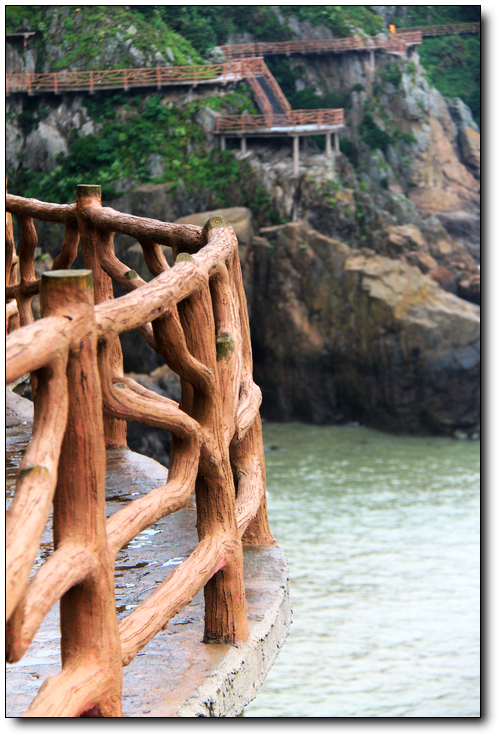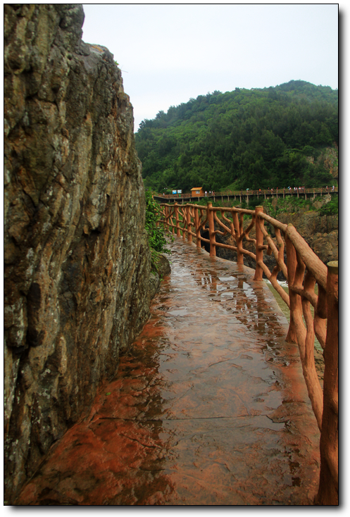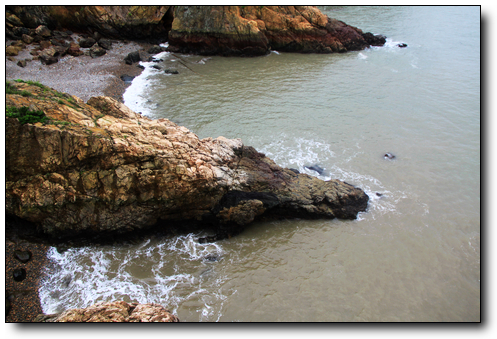 撑着伞,从仙叠岩到南炮台山,从戚继光塑像到大沙岙海滨浴场,行走在山边悬崖出的栈道上,听大海的怒涛,是有一种震撼的感觉,只是抬眼望去,雨落过的浅海,是一片浑浊,大沙岙海滨处,也是因为天气原因,沙滩被收拢,甚至也无下水踩在沙子的冲动,那石壁上刻着的“白浪金沙”仿佛变成了无法抵达的想象。一路而来,山在眼前,浪在眼前,海在眼前,却又感觉是在遥远的地方存在,而这休闲的一天,也只是经过海岛,经过洞头,经过烟雨笼罩的那一段历史。