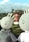 当然,在大卫·林奇的这部短片中,它们更是拥有了属于自己的名字:皮埃尔和吉姆宝贝,当然谁是皮埃尔谁是吉姆宝贝,林奇并没有进行细分的命名,但是一只大一只小,一只是花格衬衫一只是纯白衬衫,它们还是具有一定的分辨度。当林奇让它们完成变形记,赋予它们名字,它们的存在意义到底是什么?这似乎是一种拟人化的运用,但是它们发出的声音,它们的举止却又不像是人类,或者说,它们更像是“星际旅行者”伪装成的人类,它们的跳动、怪叫更像是为了融入人类。而这种伪装或者融入,对于电影本身来说,也是一次变形:这是被充气乳胶手术手套制成的人偶,这是由尖叫、争吵、口哨甚至放屁声构成的语言,而伴随着越来越多的杂音,它们甚至在传递着暴力。