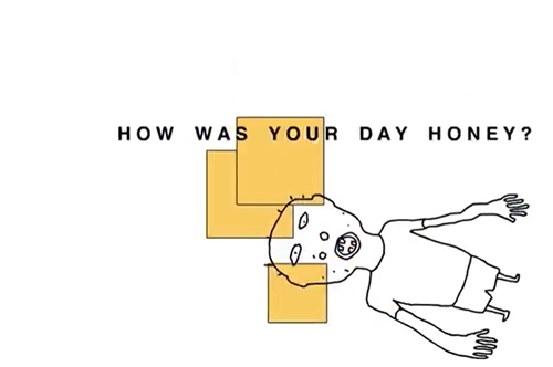 短片2分17秒,如果可以,大卫·林奇也完全可以让这部短片拉长,拉长到成为一部长篇,因为在重复中永远没有结局;也可以将它缩短至1分钟,或者只要重复一次就足够,因为重复本身不传递更新的内容。短片或长或短,它们都体现了一种可能性,但是可能性却又以毫无剧情的重复呈现,那么可能性是不是也变成了不可能?这部极简版的短片也许是林奇所有短片中最简单也最没有实验意义的电影,这是林奇一种偷懒的表现?但是他为什么用了一个传递温馨问候的片名?“亲爱的,你今天过得怎么样?”这是画中的小人在问候爱人?还是爱人在问候他?不管是谁问候谁,在漂浮、随机、重复的世界里,没有“亲爱的”的亲密性,也没有“你今天过得怎么样”的叙事性,林奇在进行着怎样的实验?