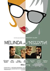 “Melinda and Melinda”,官方正式海报的一半是纯白色背景,另一半是深绿色背景;“Melinda”在纯白色背景的一半里,另一个“Melinda”在深绿色背景的另一半里,“and”刚好位于中间;最上面白色的眼镜框、黄色的头发和淡红的脸在这一边,黑色的眼镜框、灰色的头发和白色的脸在另一边……如此一分为二,无疑就是关于“双生美莲达”截然不同的命运走向,而这就是伍迪·艾伦在电影中要探讨的主题:人生是一出充满了痛苦的悲剧,还是一场最后让人快乐的喜剧?生活是笑着享受给予的一切,还是哭着接受所有的不公?